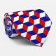 3D blocks in red, white and blue. They are stacked so that as you stare at them, the optical illusion is that they change orientation. Back of tie is solid blue.
