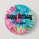 Tie dye birthday party button for a girl birthday party in tie dye theme.