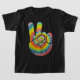 A peace sign hand symbol in a groovy multicolor tie-dye spiral. T-shirts, hoodies, cards, gifts.