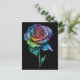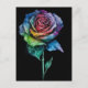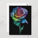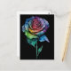 A stunning tie dye rose postcard. This colourful postcard features a single rose with multicoloured petals in a tie dye painting style creating a unique look that stands out on the black background. Perfect postcard to send to anyone who loves colourful and unique postcards.