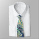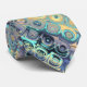 The colour scheme - teal, aqua, blue, gold - and the shapes - rounded squares, squarish circles - in sweeping, diagonal stripes certainly call to mind the tail feathers of a peacock while creating a retro, abstract look. A bold and stylish accessory, this tie could go in the direction of more formal or casual equally well. This motif can be found on a whole range of items for use in the home, the office, and outside.