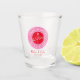 Modern, contemporary hot pink and bright red wedding shot glasses with monogram with unique hand drawn couple love birds and trendy handwritten calligraphy script. Take A Shot We Tied The Knot!