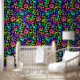 This groovy wallpaper includes a tie-dyed floral pattern in bright shades of pink, blue, yellow and green on black. It's a fun design with a retro aesthetic for hippies who dig the far-out, psychedelic vibe of the 1960s and 70s bohemians.