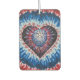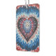 This air freshener features a vibrant tie-dye heart with red, white, and blue concentric patterns surrounds a glowing pentacle symbol and the words "Blessed Be," evoking spirituality and protection.