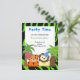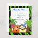 The cutest little tiger and lion wearing colourful party hats accent this fun jungle themed birthday invitation. Palm trees blowing in the background. A tiger fur print border. Customise with all of your personal information as desired. A fun zoo animal invitation.