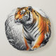 Tiger Art Colour Partial Black White Drawing Round Cushion
