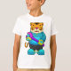 The t-shirt feels and looks great quality, a good thick cotton. It will be a little big for my son, but that means he will be able to wear it and not out grow it too soon. The print was as described on the order when personalised. True size, shape and colour T-shirt- thanks.