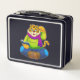 This is a standard metal lunchbox that appears to work just fine. We designed this box ourselves with an uploaded photo and custom text on the front and back. It looks absolutely beautiful except the front of the lunchbox is not centered like it shows in the photo. The print borders don't align with the inset flat part of the box where the preview photo online showed it perfectly centered in there. The back looks nice and centered though.