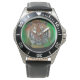 My husband loves the watch, he likes the dial, the graphics, the band, and it keeps perfect time.