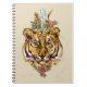 This design features a boho style watercolor portrait of a tiger dressed in flowers and feathers.