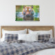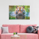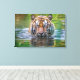 Wrapped canvas art is shown with a photo art print of a beautiful wild tiger in the water.