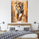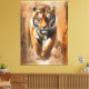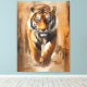 An electrifying portrayal of a tiger mid-stride, painted with bold, expressive brushstrokes that blend realism and raw emotion. The tiger’s gaze is locked forward—intense, unwavering, and alive with primal energy. Vibrant orange and black tones slash through a backdrop of earthy hues, creating a dynamic contrast that amplifies the predator’s motion and dominance. The abstract background melts into the beast’s form, blurring the line between nature and canvas. This is not just a tiger—it's momentum, focus, and power captured in paint.