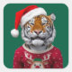 A Christmas sticker featuring a tiger wearing a Christmas sweater and a Santa hat.