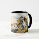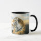 Vintage Asian illustration of a resting tiger watching the morning sky lighten.