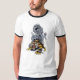 Great T-Shirt, looks cool, good thickness and fits well. Slightly lighter than expected, not pitch black, more of a faded black, but still looks good.