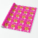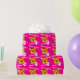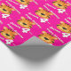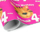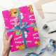 Birthday wrapping paper in girlie bright pink tiger design. Personalise this big cat tiger watercolor art birthday paper with your child's name and age. Currently reads Happy Birthday Jenna 4 today. Watercolor art and design by Sarah Trett.