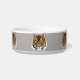 This is a heavy, durable bowl decorated with Tibbies of many colors, the perfect size for hungry/thirsty Tibs. The design is interesting and printing clear.