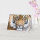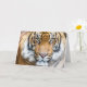 Blank greeting card featuring a close up of a tiger's face, where the tiger is looking directly at you and his orange and black striped markings are shown in great vibrancy. A fun card for animal and wildlife lovers. Photo taken in San Diego, California.