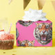 Seamless Repeat Roaring Tiger Head Pattern Design On Pink Background