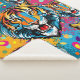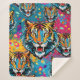 Tiger Head Rainbow colours paint stains Sherpa Blanket