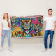 Tiger Head Rainbow colours paint stains Throw Blanket