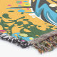 A quality printed throw has its advantages. This is a much finer weave throw than its loopier cousins, and though lighter, it is worth the investment for custom room accessorizing. The back is much prettier than the typical brown, and the fringe on the long sides very vivid, the selvage nicely done. Before photographing, I washed the throw in cold water, delicate, with a thicker woven throw the same size. On tumble dry low, this throw was dry in half the time as the other. This is a very practical quality if you use throws for furniture covers or to wrap up in frequently. The sleekness of the fabric makes it a great layer for accenting or protecting without the feeling of sitting on too much stuff. Perfect for napping or when you feel a light chill coming on. The color printing is beautiful and on this fabric, matched the design and color of my Photoshop image. This is an advantage for blending room fabrics and colors. The fringe on the short sides prints the colors from the design image and therefore varies from the side fringe. I streaked a white fractal line through the plaid pattern to give the illusion of weaving. This printed as crisp as an illusory thread, and put some white in the short side fringe, showing another advantage of print vs loomed- for artistic purposes, line lines, detail, and color integrity can be planned and preserved. My loomed throws have color limitations and more of a needlepoint texture. Print throws reproduce an exact image. The throw felt a little stiff straight out of the package, but this went away in the first delicate wash. Of course I searched the wash water for ink or bleeding and there was none.
