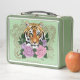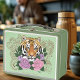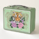 Tiger Henna Pink Purple Flowers Metal Lunch Box