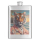 Funny Tiger wearing a Hawaiian shirt on a beautiful beach.
