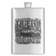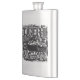 The product is a good size and came exactly as it was pictured. The lid is not attached to the flask, which could be dangerous on drunken nights... The print came out surprisingly well and looks very sharp. Would definitely recommend.