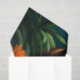 Tiger sitting in tropical Jungle with large blue green leaves and orange flowers
