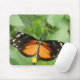 This stunning mousepad features a photograph of a beautiful tropical butterfly. This species is called a Tiger Longwing Butterfly (Heliconius hecale). It has beautiful orange patches on each wing. The rest of the wing is black and is patterned with white spots. It comes from South America. The photograph was taken using macro photography for a stunningly detailed result.