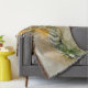 A quality printed throw has its advantages. This is a much finer weave throw than its loopier cousins, and though lighter, it is worth the investment for custom room accessorizing. The back is much prettier than the typical brown, and the fringe on the long sides very vivid, the selvage nicely done. Before photographing, I washed the throw in cold water, delicate, with a thicker woven throw the same size. On tumble dry low, this throw was dry in half the time as the other. This is a very practical quality if you use throws for furniture covers or to wrap up in frequently. The sleekness of the fabric makes it a great layer for accenting or protecting without the feeling of sitting on too much stuff. Perfect for napping or when you feel a light chill coming on. The color printing is beautiful and on this fabric, matched the design and color of my Photoshop image. This is an advantage for blending room fabrics and colors. The fringe on the short sides prints the colors from the design image and therefore varies from the side fringe. I streaked a white fractal line through the plaid pattern to give the illusion of weaving. This printed as crisp as an illusory thread, and put some white in the short side fringe, showing another advantage of print vs loomed- for artistic purposes, line lines, detail, and color integrity can be planned and preserved. My loomed throws have color limitations and more of a needlepoint texture. Print throws reproduce an exact image. The throw felt a little stiff straight out of the package, but this went away in the first delicate wash. Of course I searched the wash water for ink or bleeding and there was none.