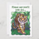 Animal Parade Cute Tiger Personalised Birthday Invitations, Cards, Gifts, Party Favours and much more are for the fun side of you with our original art of a whimsical tiger standing in the standing in a shady green jungle with a yellow, green textured sky a playful wavy dark green border. Painted by our talented children's artist, Traci Van Wagoner, our fun wild animal themed party gear is perfect for tiger lovers of all ages. On many of our whimsical wild animal party gear, you’ll see the cute Bengal tiger coming and going with this fun artwork of the cute tiger's head on the front and the silly tiger's tail on the back. Join the Animal Parade and throw your kid an animal-filled bash with our fun heads and tails tiger themed birthday party gear. To kickstart your party, send all your child’s friends an invitation they can’t refuse. Have a wonderful time! Roar!