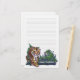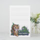 Animal Parade Tiger Personalised Stationery and Accessories are for the fun side of you featuring our original art of a cute tiger character standing in a shady green jungle with a yellow, green textured sky with a wavy dark green border painted by our talented children's artist, Traci Van Wagoner. On many of our whimsical animal products, you’ll see the fun Siberian tiger coming and going with this fun artwork of the whimsical tiger’s head on the front and the playful tiger’s tail on the back. Join the Animal Parade and buy an entire set of matching customisable Animal Parade tiger home and office accessories today. Perfect for tiger lovers of all ages. Roar!
