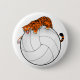 Round button pin printed with design of a fierce tiger crouching on a volleyball.  Click the 'customise it' button to add a team name, number, player name or coach name.