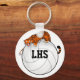 Round white keychain with illustration of tiger crouching on a volleyball. Customised with your school initials, or add a name, or phrase like "go tigers!" Fun for volleyball players, parents, booster, or coaches.