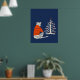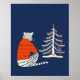 Cute illustration of a tiger dressed in a red sweater waiting for Christmas in front of the tree.