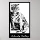 A Tiger in black and white art sitting. You can also customise this poster with your own sayings.
