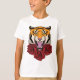The t-shirt feels and looks great quality, a good thick cotton. It will be a little big for my son, but that means he will be able to wear it and not out grow it too soon. The print was as described on the order when personalised. True size, shape and colour T-shirt- thanks.