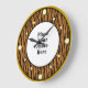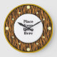 Tiger round photo frame behind the hour marks, Place your photo here custom wall clock, your photo will appear behind the round photo frame for a truly professional look - light gold dots for hour marks - 12,3,6 and 9 being larger dots, in a diamond shaped pattern looks great on round or square clocks