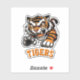 This custom cut sticker is shown here with a tiger's print.