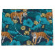 Hand -drawn vector tigers and lotus flowers and leaves pattern