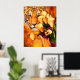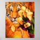 A young Sumatran tiger is peering from behind a bouquet of flowers. Chinese tiger symbol.