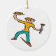 Circus tightrope walking design shows tightrope walker balancing on rope with hat in one hand and cane in the other.