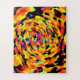 This bold abstract is swirling with tiger colours of orange, yellow and black with hints of lime green, pink and turquoise.