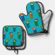 Tiki Mugs Retro Hawaiian Tropical Drinks Teal Oven Mitt & Pot Holder Set
