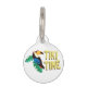 I love this tag - it has a cute funky design and matches my dog's purple collar. It also came with a rubber band to put around it - I originally thought it was just to protect the tag, but it actually glows in the dark too! Which I think is very cool. especially if you're walking your dog in the dark. The printing is awesome. Very clear, with lots of space for the details I wanted on the tag