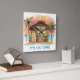 Tiki Time Tropical Beach Bar Surf & Sea Square Wall Clock