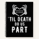 Til death wedding planner notebook with blank pages and a black and white skeleton heart design.