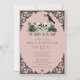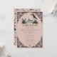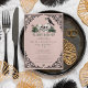 This elegant gothic "Til Death Do Us Part" Irish bridal shower invitation features hand-drawn Irish & gothic themed illustrations in black ink, showcasing 2 skulls and a black crow adorned with green roses, leaves, berries, wildflowers and green clovers. The back features a beautiful pattern with these elements. Elegant blush pink background. All text is editable.